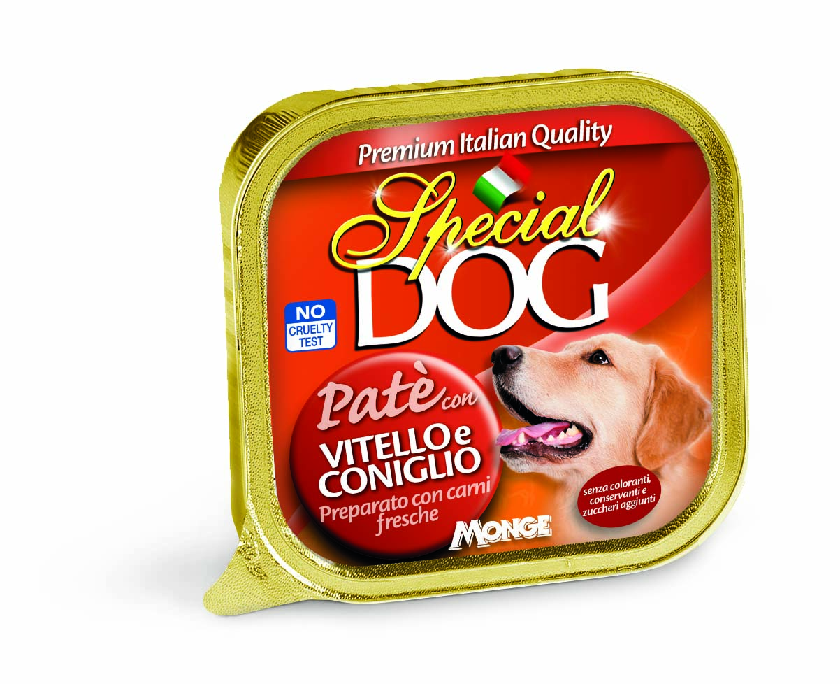SPECIAL DOG ADULT PATÉ WITH VEAL AND RABBIT is a complete balanced pet food for adult dogs of every sizes. The recipe is fortified with vitamins A-D3-E to support bodily functions. The paté are steamed to maintain the natural palatability of the recipe meat. This complete food can be combined with dry food and is specifically designed for the daily nutritional requirements of adult dogs engaged in normal physical activity. No added artificial dyes, no preservatives and no added sugars. Made in Italy and No Cruelty Test.